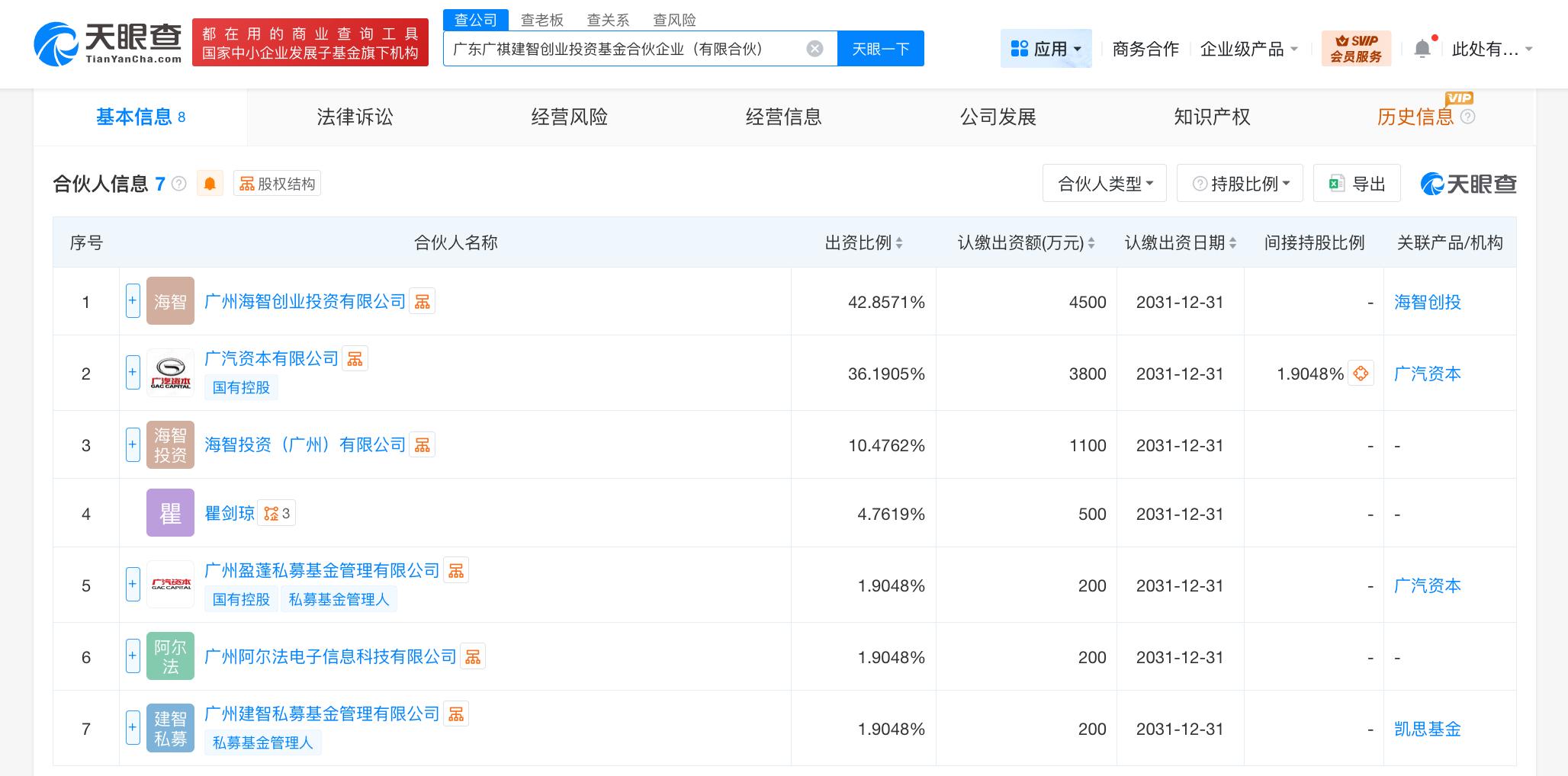 合伙人信息显示,该基金由广州海智创业投资有限公司、广汽集团(601238)旗下广汽资本有限公司、海智投资(广州)有限公司、广州盈蓬私募基金管理有限公司、广州建智私募基金管理有限公司等共同出资。